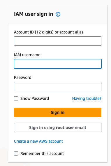 }Kullanıcınızı oluşturduktan sonra size bir “sign-in” URL verecek. Örnek vermek gerekirse, eğer hesap numaranız 12345 ise bağlantınız https://12345.signin.aws.amazon.com/console oluyor. Hesabınıza özel olan bu URL’i bookmarklamanızı tavsiye ederim. Bu bağlantıyı kullanarak yeni oluşturduğunuz kullanıcıyla konsola giriş yapabilirsiniz. Ya da https://console.aws.amazon.com üzerinden gelip account ID (örneğimizde 12345) ve yeni oluşturduğunuz kullanıcı adını girerek login olabilirsiniz.