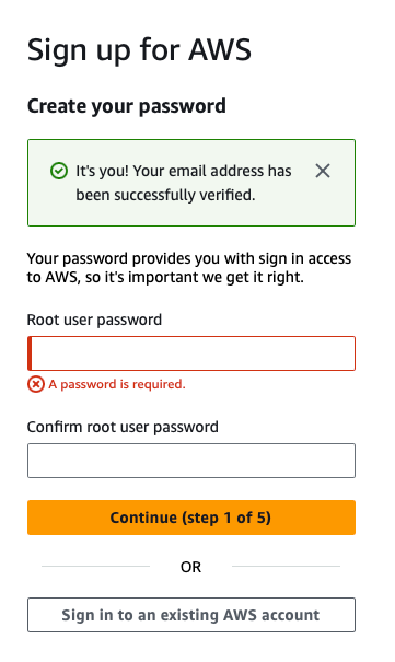 “Root” kullanıcı şifresini belirleyin ve şifrenizi güvenli bir şekilde saklayın. AWS üzerindeki servisleri kullanabilmek için “kullanıcı”lar gerekiyor ve her AWS hesabının mutlaka bir “root” kullanıcısı bulunuyor. Genellikle root’un, hesabı açıp daha sonra bir “admin” kullanıcısı oluşturmak haricinde kullanılması tavsiye edilmiyor. Çok geniş yetkileri olduğu için, herhangi bir şifre çalınma durumunda hesap elden gider. Kötü niyetli birileri hesabınızı kullanarak faturanızı şişirebilir, milleti spamlayabilir, yasadışı işler yapabilir. Bu yüzden, hesap açıldıktan sonra birazdan aşağıda anlatacağım şekilde yeni bir “admin” kullanıcısı oluşturacağız. Şimdilik root ile devam.