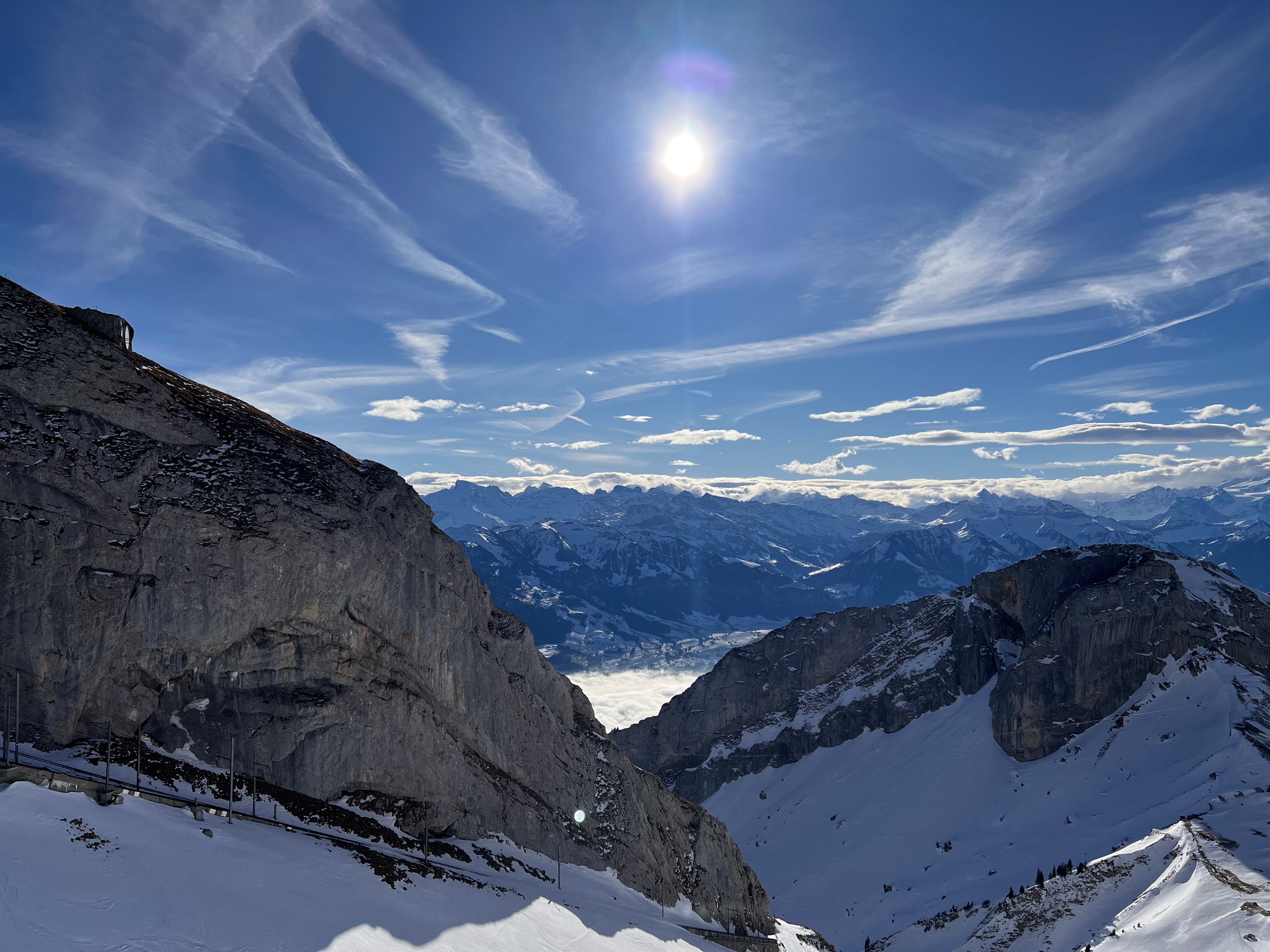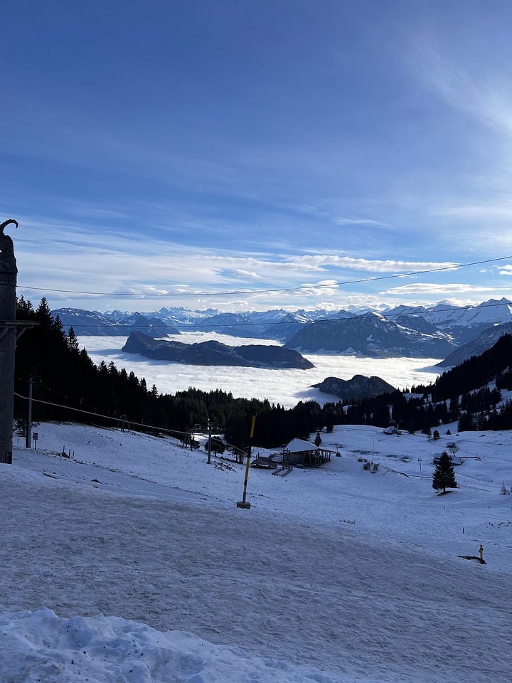İkinci gün hedefimiz, biraz daha yüksek olan (yaklaşık 2100 metrede bulunan) Pilatus Dağı'na çıkmaktı. "Golden round trip" adı verilen ve dağın bir tarafından teleferikle gelip diğer tarafından trenle döndüğünüz turu yapmak istiyorduk. Fakat kışın tren işlemiyormuş, zaten dağa çıkınca neden işlemediğini gördük. Aşırı dik bir tren yolu ve tamamen karla kaplıydı.